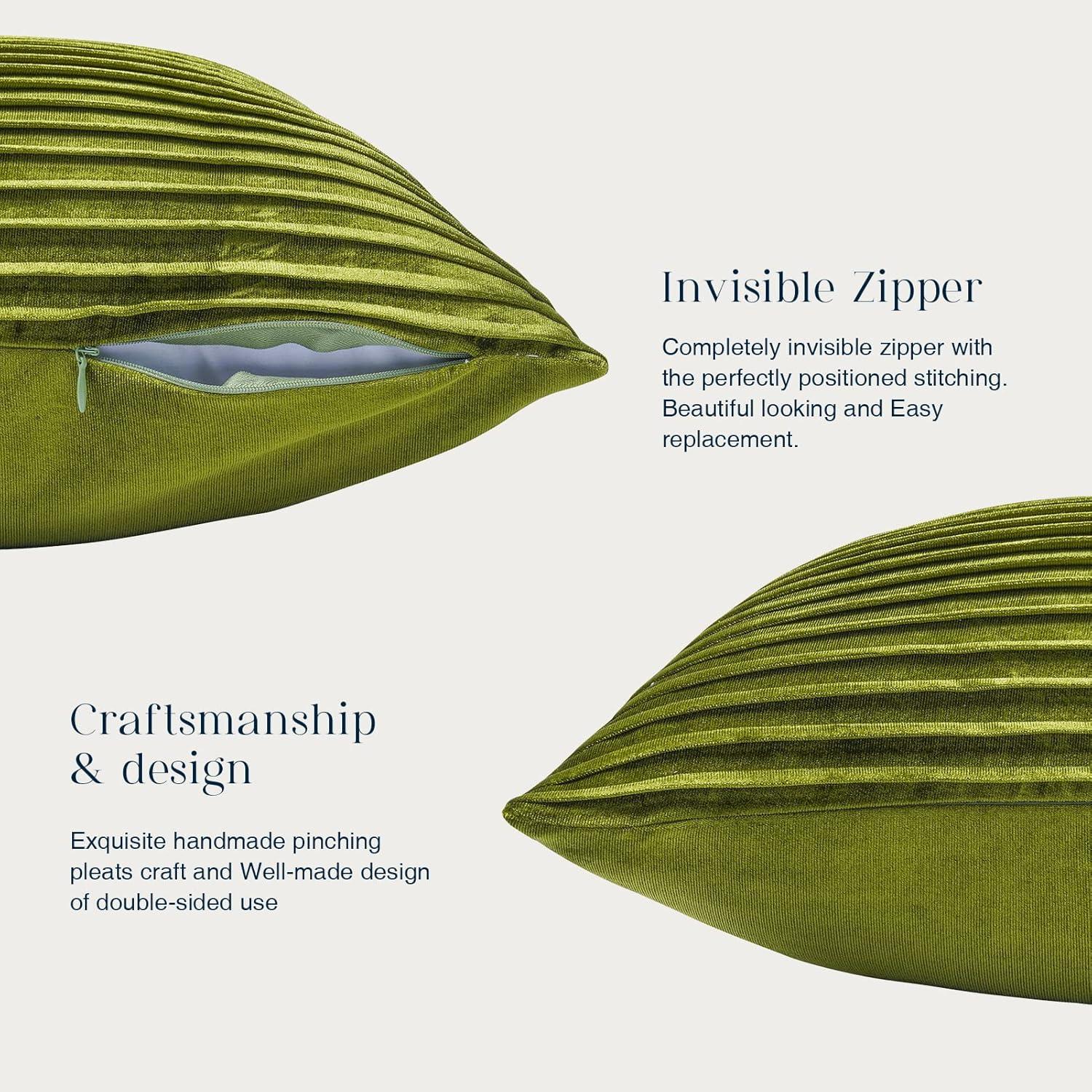 【Hidden Zipper】- Invisible zipper is designed for easier insertion and replacement of throw pillow, while keeps the elegant look and long-lasting usage. Great stitching enforces the durability of the zipper.