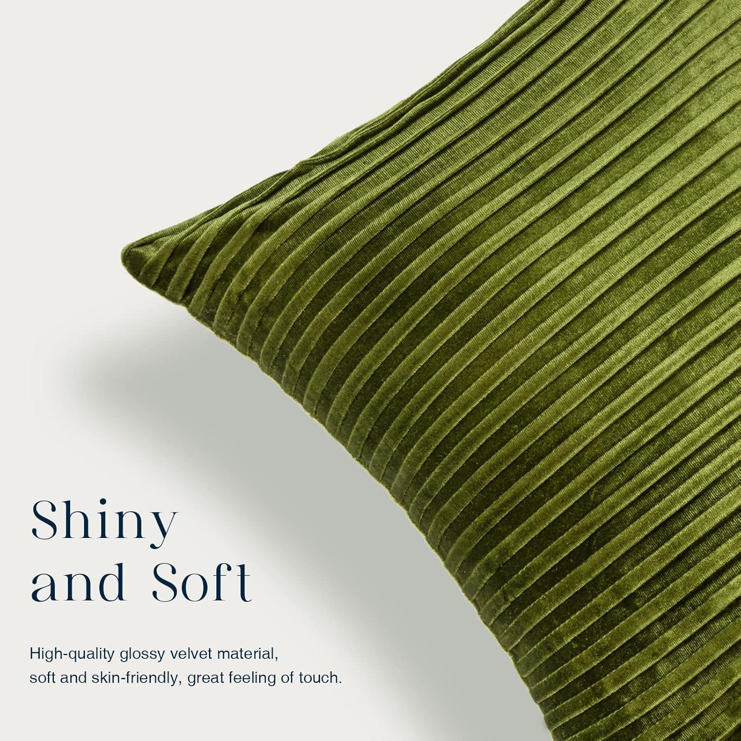 Phantoscope Pack of 2 Velvet Decorative Throw Decorative Pillow Cover – Crushed Velvet Handmade Pleated Design – Soft Solid Square Pillow Case for Couch Bed and Chair, Green, 18 x 18 inches 45 x 45 cm(Green)
